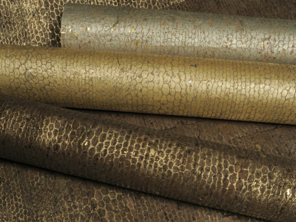 La majorité des références est imprimée sur du liège, produit naturel renouvelable, qui provient de l’écorce du chêne-liège. Après l’écorçage, qui se fait à la main, des carrés de liège sont collés sur un support métallisé. Ensuite le liège est poli afin d’obtenir une surface parfaitement lisse, prête à être imprimée. Tout ce processus complexe est réalisé exclusivement par de la main d’oeuvre spécialisée – aucune machine n’est utilisée.