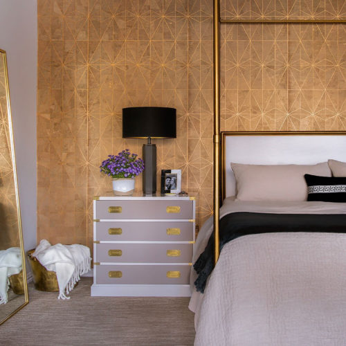 Eco-responsableCéleste: cette marqueterie au motif étoilé rend hommage à l'élégance de la feuille d'or.