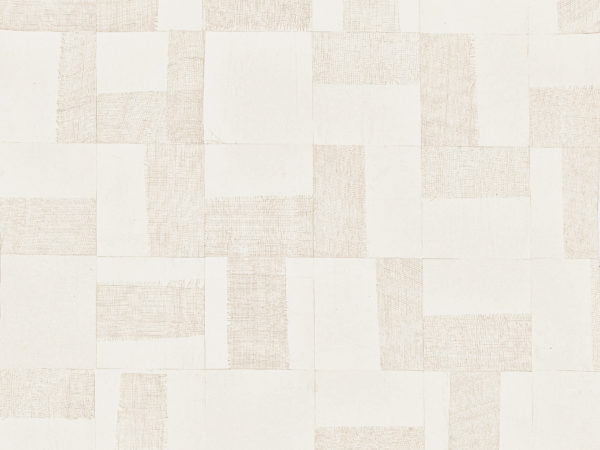 Eco-responsableIntensify: un patchwork géométrique en papier, enrichi de tissages de raphia ouvert de teinte lin, apportant profondeur et texture au design.