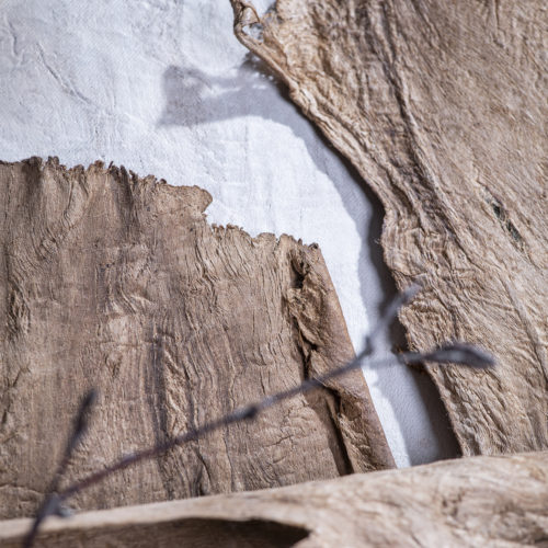 A curated selection of the most stunning variations of mulberry and cork oak barks is showcased in this new collection, exposing the richly sensuous experience of these soft and matt natural textures.