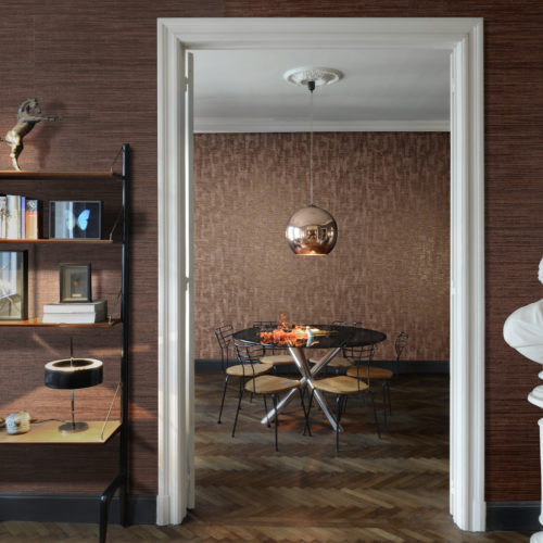 Most items of the collection are printed on natural cork. The cork is harvested manually from the bark of the cork oak, then cut into squares which are glued on a metallic backing. The squares are polished afterwards until they are perfectly smooth and flat, ready to be overprinted. Only specialized handcraft is involved in this elaborated production process.