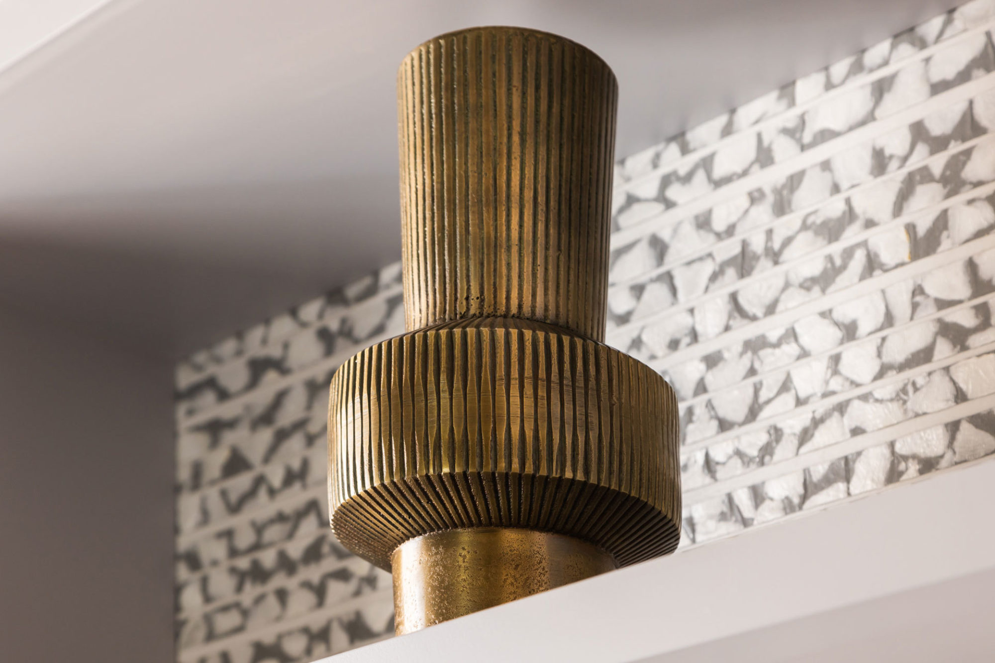 By incorporating this handmade wallcovering, we not only highlighted the bookcase but also allowed other accent pieces to stand out. It has become a constant talking point during our client’s meetings, as the beautiful background is often admired and always on display. The result is a cohesive, harmonious space where every element—from the furniture to the décor—feels beautifully tied together. The mother-of-pearl adds a layer of refinement, elevating the overall design and ensuring the room feels luxurious yet understated. » − BRIC Interiors